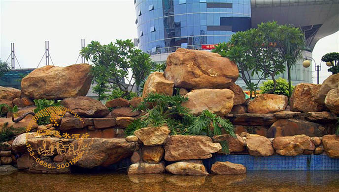 庭院中塑石假山实际案例 笔者在豪宅中的豪宅-财富公馆别墅区塑石假山施工...